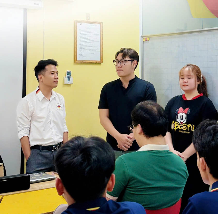 Một thói quen giúp các bạn rèn luyện tính tự giác và yêu thích tiếng Đức hơn là khi bước vào lớp chỉ giao tiếp với nhau bằng tiếng Đức. Đây cũng là môi trường Đức thu nhỏ và cũng là hành trang tốt để các em chuẩn bị sang Đức với các diện như Du học nghề, Chuyển đổi bằng, Du học tiếng.