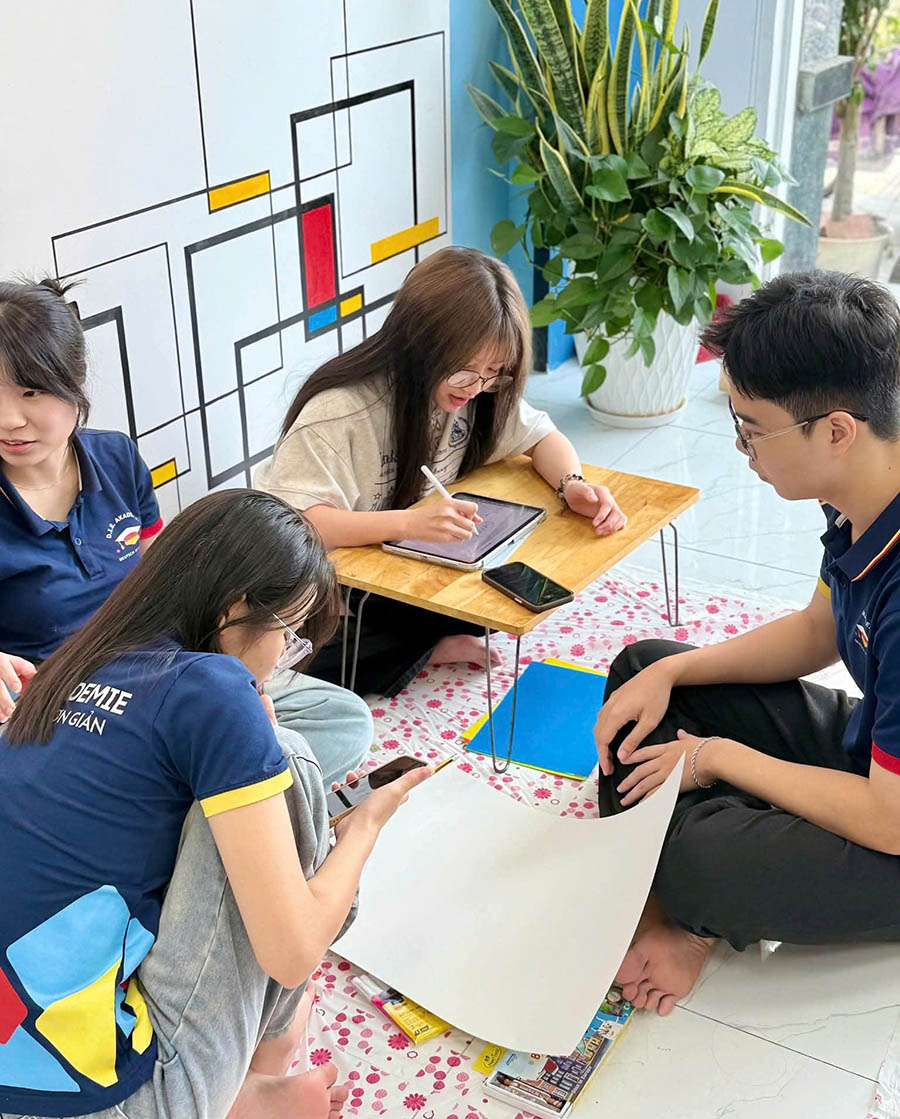Không gian mở tại trung tâm giúp các bạn đoàn kết hơn, ngoài các bạn lớp B2 ra trung tâm có các lớp từ A1-B1 cùng giao lưu sau giờ học căng thẳng. Có những bạn cùng quê gặp nhau, có những bạn quen nhau từ trước nhưng vô tình gặp nhau ở DIE.